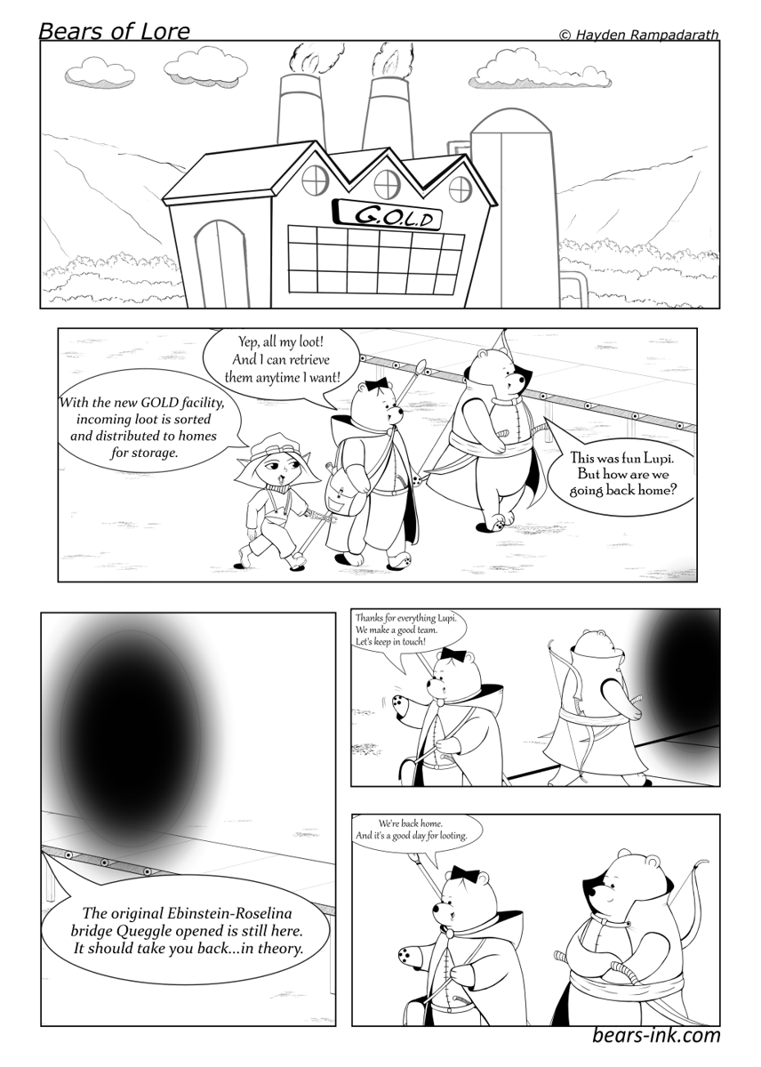 59. A Good day for Looting (chapter finale) 59. A Good day for Looting (chapter finale) published on August 16, 2025Read more posts by the author of 59. A Good day for Looting (chapter finale), haydenrampadarath Its been a wild ride, but we’ve finally completed the second Chapter of Bears of Lore. Now we will be taking a break to finalise Chapter 3, which we hope to resume at the beginning of October. Thanks from us here at Bears Ink Share this: Click to share on Bluesky (Opens in new window) Bluesky Click to share on Reddit (Opens in new window) Reddit Click to share on X (Opens in new window) X Click to share on Facebook (Opens in new window) Facebook Click to email a link to a friend (Opens in new window) Email Like this:Like Loading... Related 1
